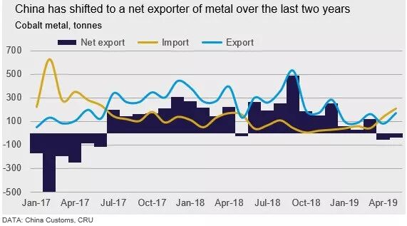 过去两年,伴随着全球钴市场所经历的繁荣和衰退,中国已成为电钴净出口国。去年,中国电钴净出口量达到2661吨,其中九月达到488吨。