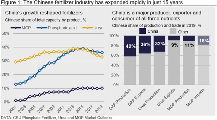 China’s influence in the fertilizer industry has grown substantially since the early 2000s. Chinese production capacity across all three nutrients grew rapidly and now the country is the largest producer of DAP, MAP and urea. The rapid expansion of Chinese fertilizer producers was not driven entirely by economics or typical return on investment metrics. Government policy and a drive for food security have been critical in shaping the Chinese fertilizer industry.