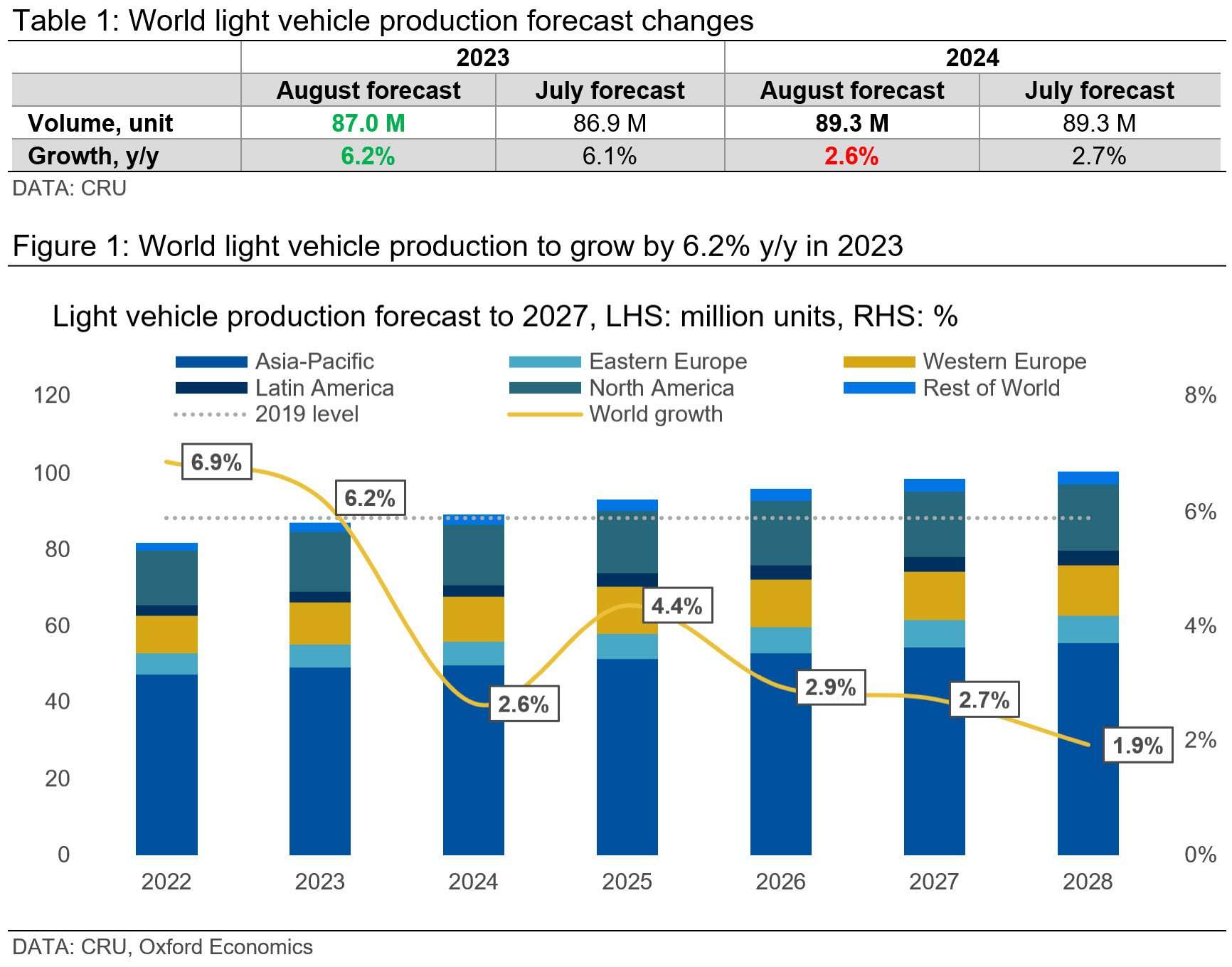 As global growth recovers, growth in auto production again picks up in 2025. After that, it settles back to a trend growth rate of just under 3%.