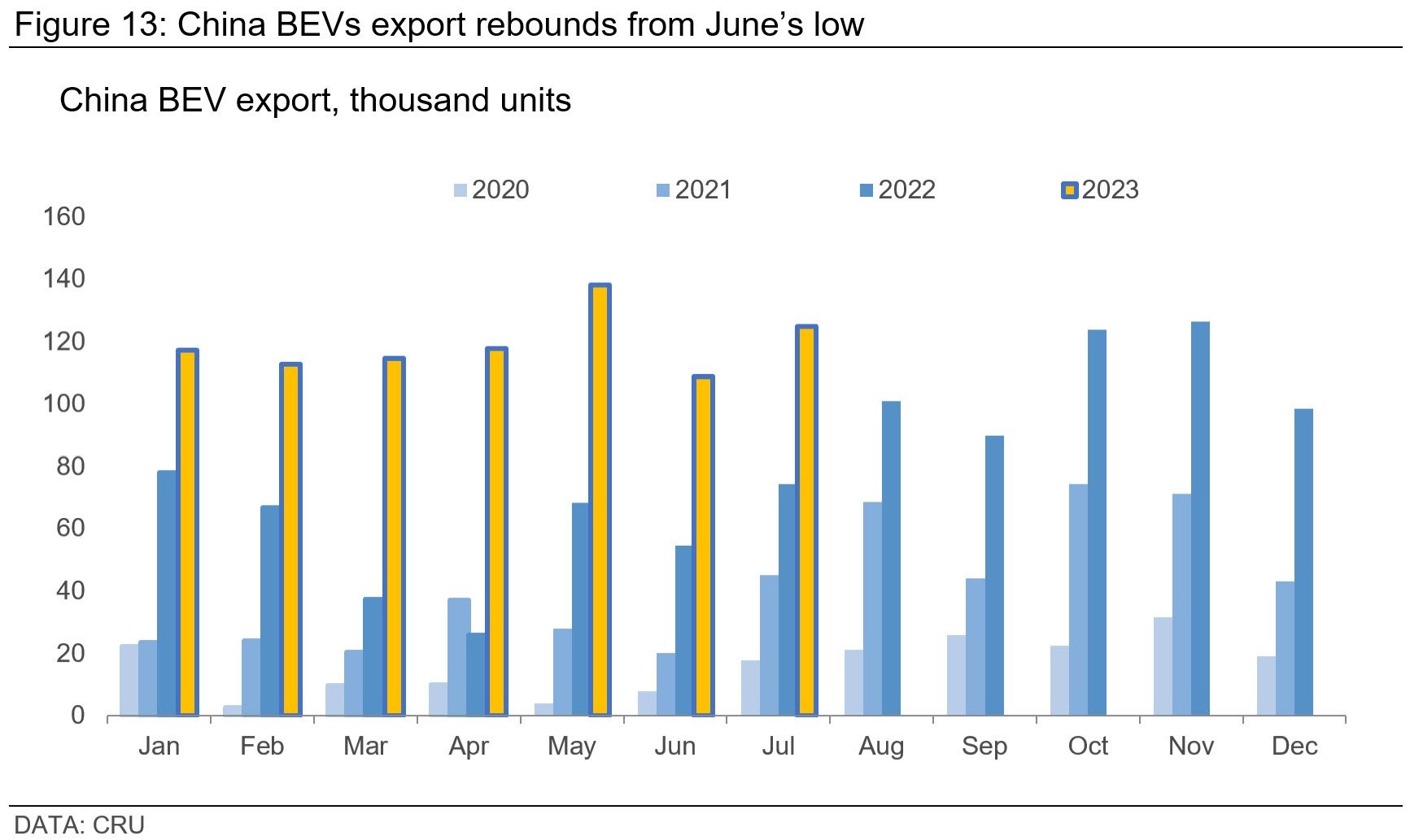 An intriguing development in July was the growth story of commercial vehicles. Bolstered by the low comparative base from 2022, this segment showcased double-digit y/y growth in production and sales (17% and 16.8% respectively). However, the spotlight remains firmly on EVs and car exports, a sector that seems set on an unwavering upward trajectory.
