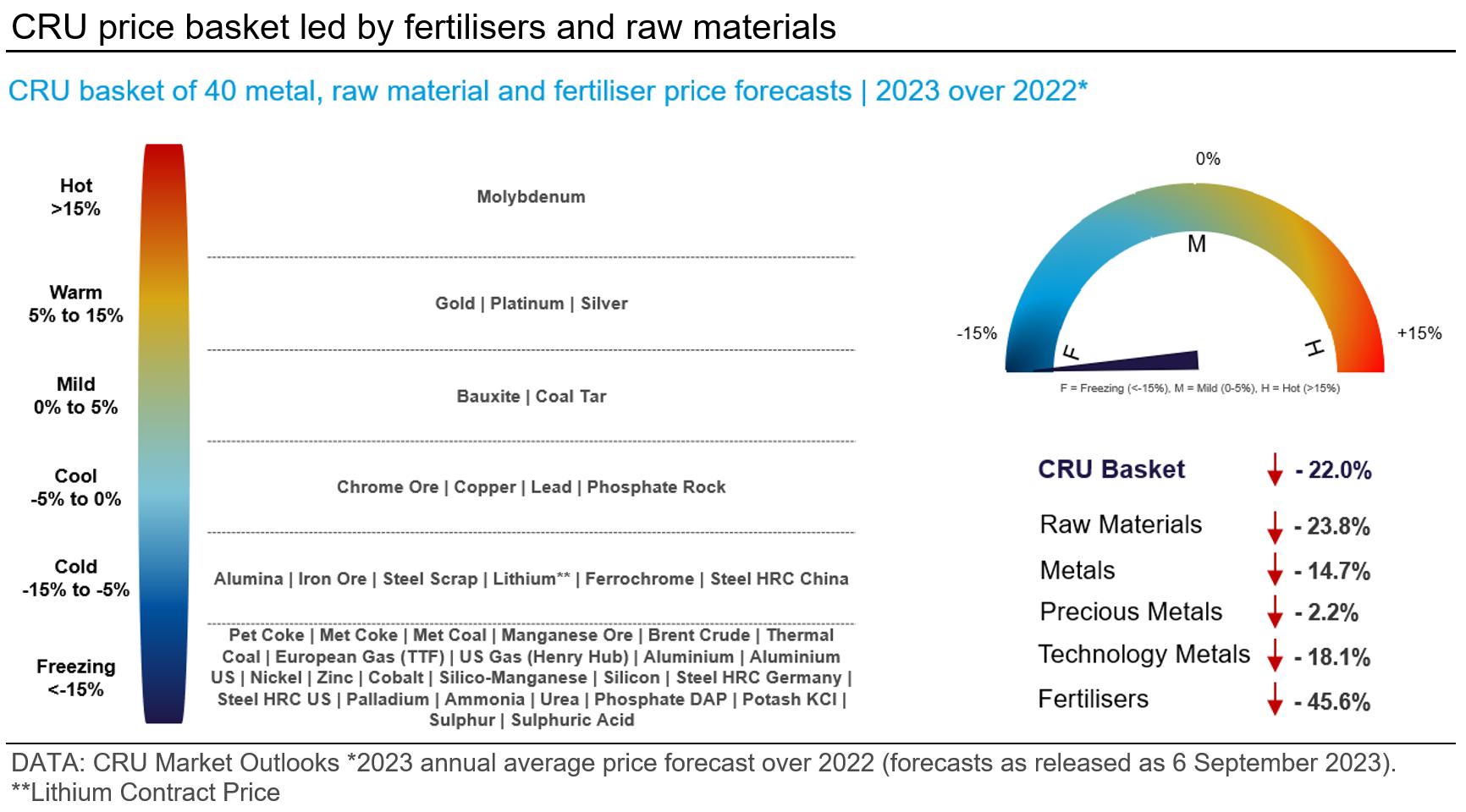 Price declines are expected across the spectrum of commodities covered by CRU in 2023 as markets rebalance following severe supply/demand imbalances in 2021 and 2022 and the global economy continues to slow in the face of persistent macroeconomic headwinds.