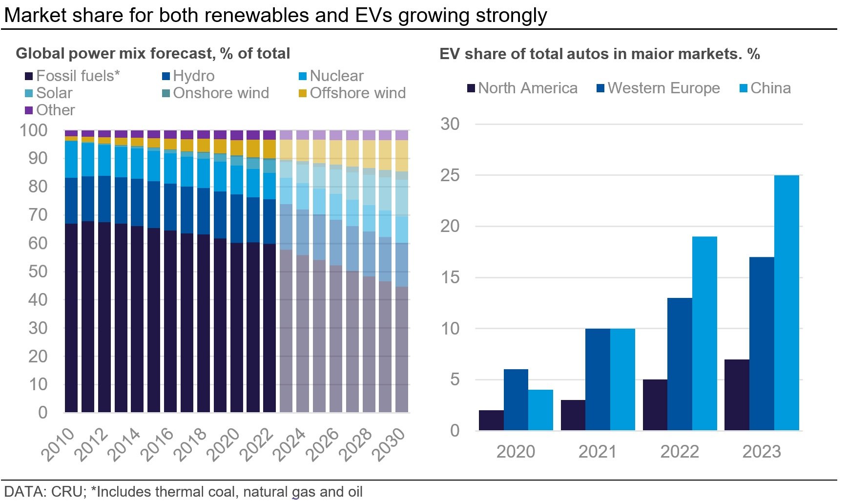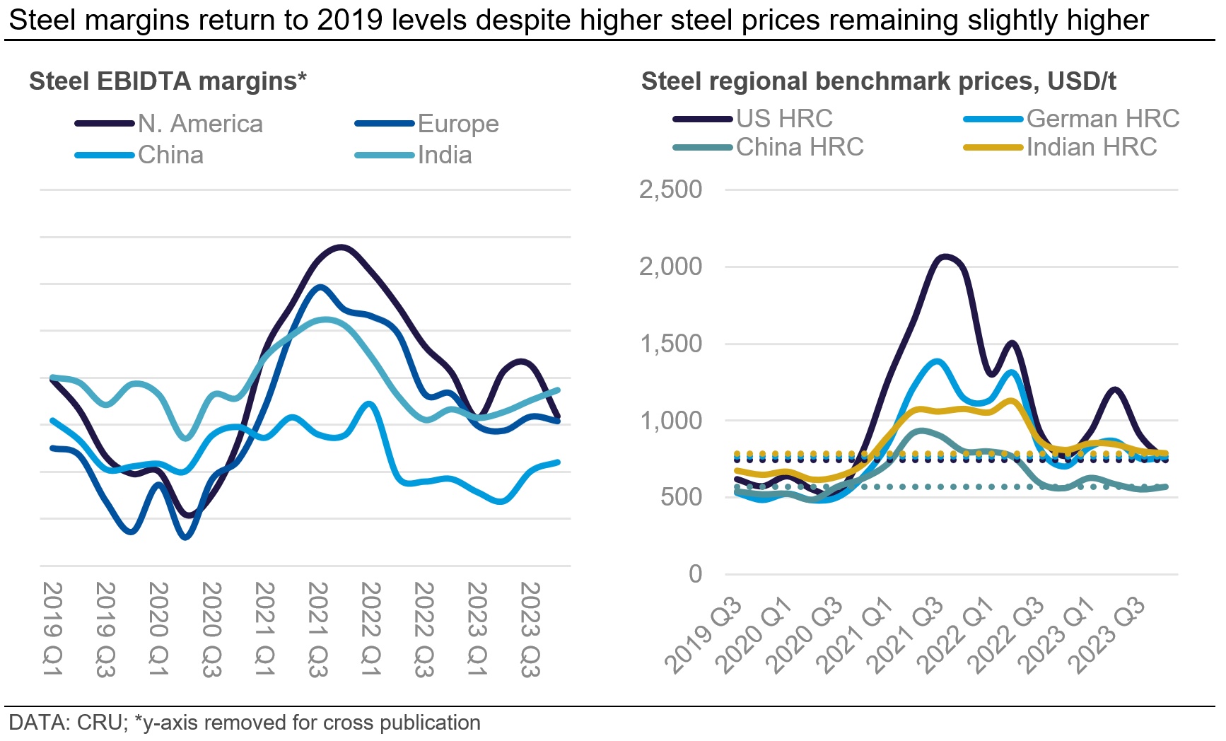 CRU expects the worst of commodity price declines will be in the past following 2023. Commodity prices are expected to plateau from 2024 on slowly improving demand.