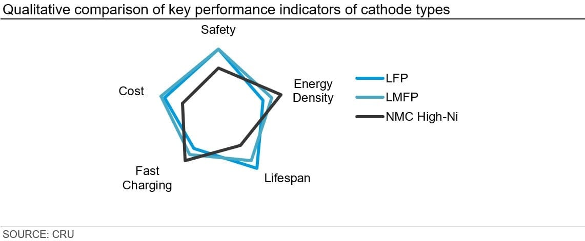 It is important to note that such comparisons are largely theoretical for the time being, and that not all performance indicators are equally important. There is an abundance of field data on LFP, but none for LMFP and other upcoming chemistries. It remains to be seen how LMFP performs in vehicles before a more accurate assessment can be made.