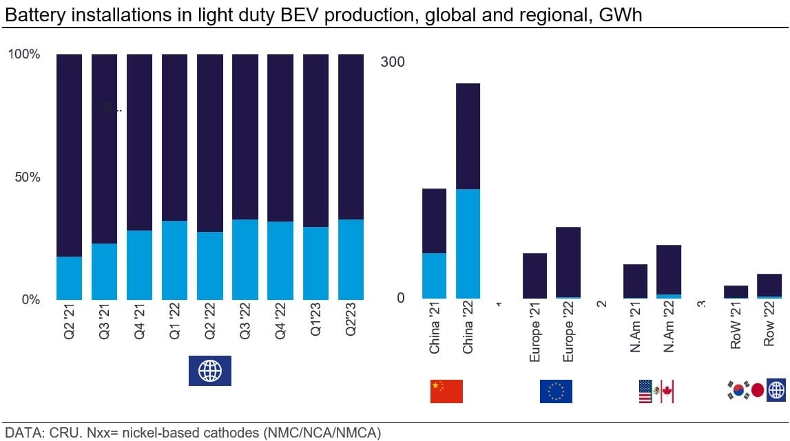 The rapidly growing electric vehicle (EV) and energy storage markets are predicated on lithium-ion batteries. In China, this has coincided with a growing preference for low-cost lithium iron phosphate (LFP) batteries.