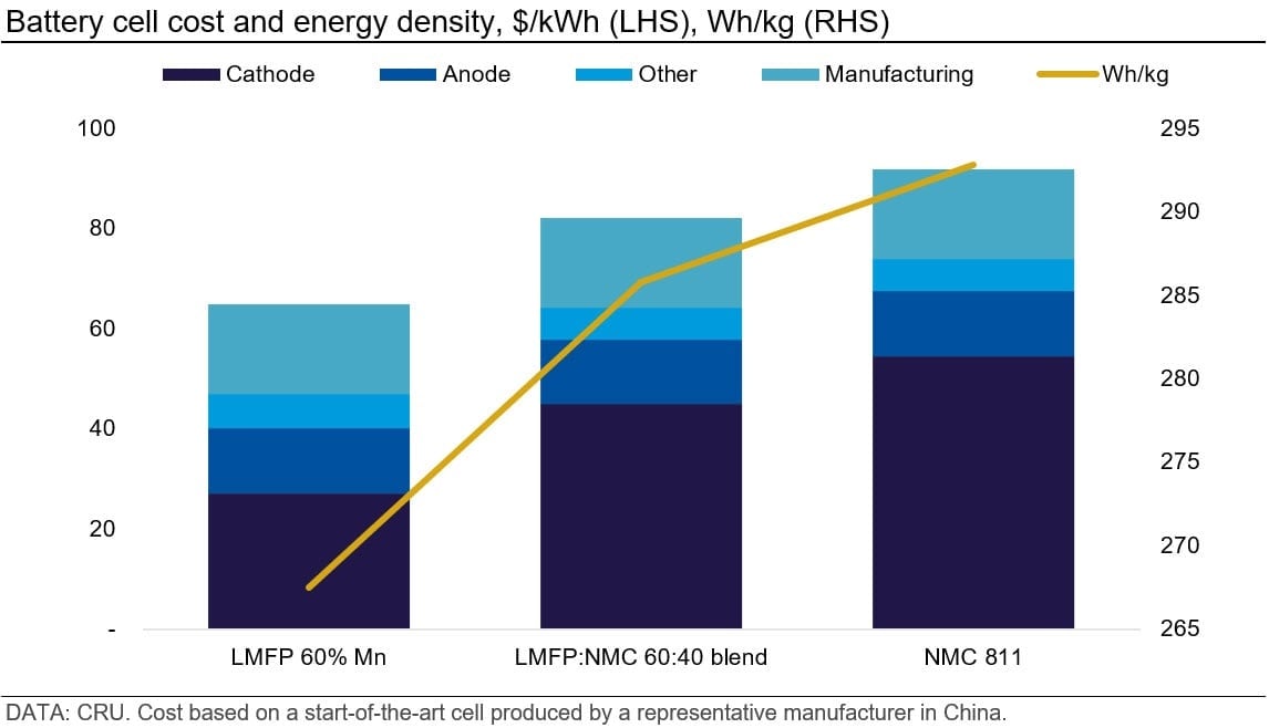 If implemented in the form of large-format cells in combination with space-efficient ‘Cell-to-Pack’ configurations, LMFP could even compete with high-nickel chemistries.