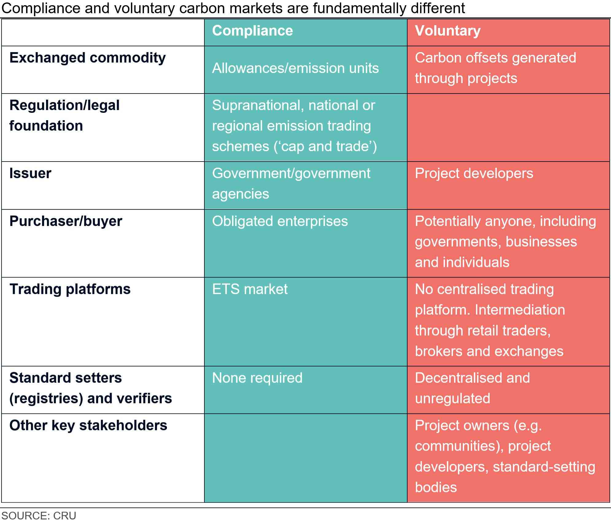 We will address these and other questions in parts two to five in this Insight series. Part one (this insight) starts by comparing compliance and voluntary carbon markets.