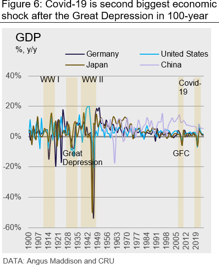 In our base case forecast, we assume that lockdowns across major economies end in Q but social distancing (enforced or voluntary) continues into Q4. Q2 is expected to be the trough in global activity, followed by a recovery in Q3. Implicit in that forecast is the assumption that there is no sizeable second outbreak. Fears of a second wave have increased following the recent rise in cases in China, Germany, and the USA (Figure 2a). CRU calibrate a scenario in which new outbreaks gives rise to a significant rise in Covid cases, that lead to two additional lockdowns (in Q4 of 2020 and Q1of 2021). The lockdowns are likely to be less stringent than those imposed earlier in the year but would be present in all the major regions. If that did happen it could lower world GDP growth to -9% in 2020, almost twice the size of our June base case forecast of a 5% fall.