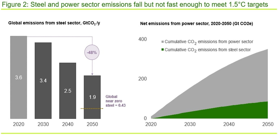Changes in the steel and power sectors will be crucial if the world is to decarbonise but this will be costly. CRU’s Steel Long Term Market Outlook calculates that the steel sector will cost the global economy over $0.6 trillion more annually by 2050 in real terms due to decarbonisation. The steel sectors transition will be demanding on energy systems and supporting infrastructure, using vastly more natural gas and ten times the electricity; but even with this, net zero targets in 2050 are expected to be missed.